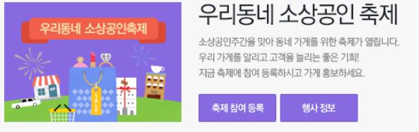 소상공인연합회 관계자는 "소상공인 단체들이 공동으로 추진하는 이번 행사를 통해 '소상공인의 날'에 대한 인식을 고취 시키고, 동네 소상공인 업체 이용으로 지역 경제 발전에 동참하는 분위기를 조성할 것"이라고 밝혔다.'우리동네 소상공인 축제' 배너 광고.<사진출처=네이버>