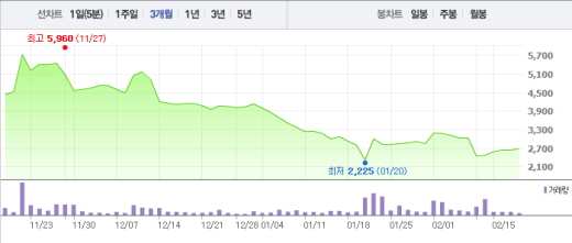 현대상선은 이날 유가증권시장에서 전일대비 35원(1.32%) 오른 2680원에 거래를 마쳤다. 12일부터는 5일 연속 오름세를 기록하고 있다.주가흐름<사진출처=네이버 캡쳐>