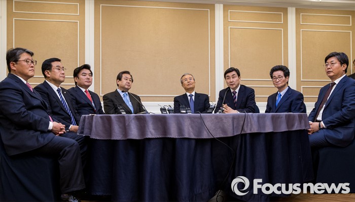 이에 유 원내대변인은 기자들을 향해 "알아서 판단해달라"고 말했다.18일 오후 서울 여의도 국회에서 열린 쟁점법안 및 선거구협상 관련 여야 4+4 회동에서 여야 지도부가 대화하고 있다. 왼쪽부터 조원진 새누리당 원내수석부대표, 김정훈 정책위의장, 원유철 원내대표, 김무성 대표, 김종인 더불어민주당 비대위 대표, 이종걸 원내대표, 이목희 정책위의장, 이춘석 원내수석. 2016.02.18 양지웅 기자