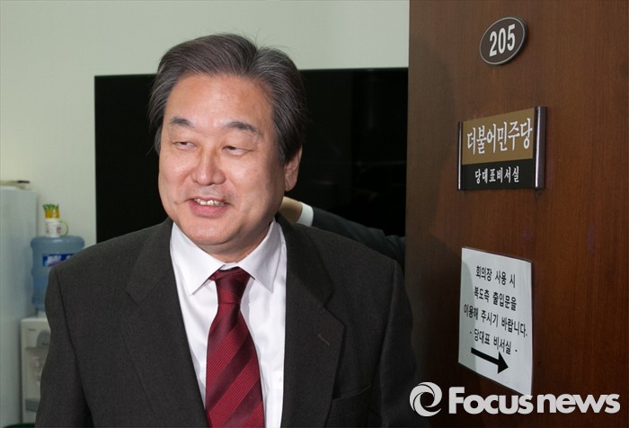 | △ 더민주 대표실 나서는 김무성 |