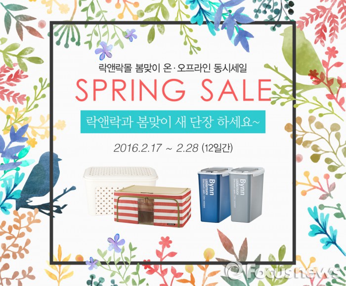 김연진 락앤락 국내영업1본부 이사는 "보관과 정리에 탁월한 제품들만을 모아 구성한 봄 특별전인 만큼, 겨우내 묵은 먼지를 털고 새롭게 집안을 단장하길 원하는 주부님들의 큰 관심이 기대된다"고 말했다.락앤락 '봄맞이 온오프라인 동시세일' 안내 포스터. <사진제공=락앤락>