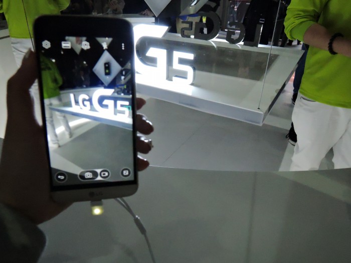 (바르셀로나=포커스뉴스) LG전자의 전략 스마트폰 ‘G5’가 세계 최대 이동통신박람회 모바일월드콩그레스(MWC)를 하루 앞둔 21일(현지시간) 스페인 바르셀로나에서 베일을 벗었다.
