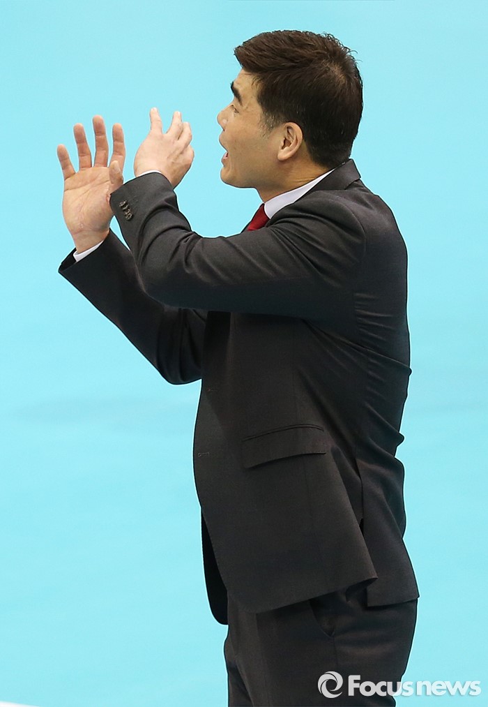 (수원=포커스뉴스) 23일 수원실내체육관에서 열린 '2015-2016NH농협 V-리그' 남자부 한국전력-삼성화재 경기에서 삼성화재 임도헌 감독이 선수들에게 작전을 지시하고 있다.