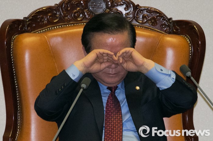 (서울=포커스뉴스) 정갑윤 국회부의장이 24일 오전 서울 여의도 국회 본회의에서 김광진 더불어민주당 의원이 테러방지법과 관련해, 무제한 토론을 하는 동안, 눈을 비비고 있다.