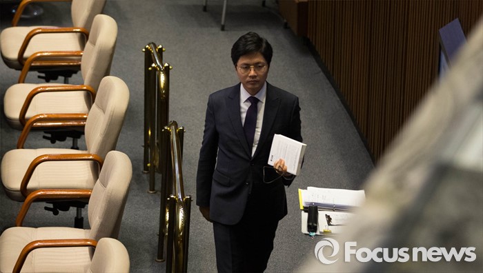 (서울=포커스뉴스) 5시간 33분간 이어진 필리버스터를 끝낸 김광진 더불어민주당 의원이 24일 오전 서울 여의도 국회 본회의장을 나서고 있다.