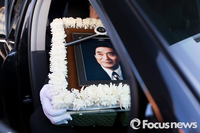 (서울=포커스뉴스) 24일 오전 서울 서초구 서울성모병원에서 故 이기택 전 민주당 총재의 발인식이 진행되고 있다.