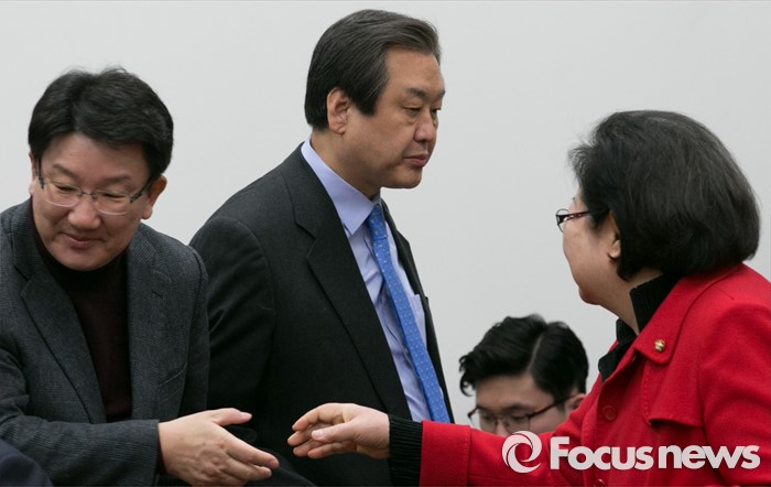 (서울=포커스뉴스) 김무성(가운데) 새누리당 대표가 24일 오전 서울 여의도 국회에서 열린 최고중진연석회의에 참석하고 있다.