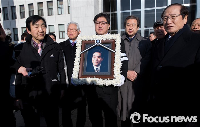 (서울=포커스뉴스) 24일 오전 서울 여의도 국회의사당 본청 앞에서 김무성 새누리당 대표가 故 이기택 전 민주당 총재의 4.19 민주사회장 영결식에 참석하고 있다.