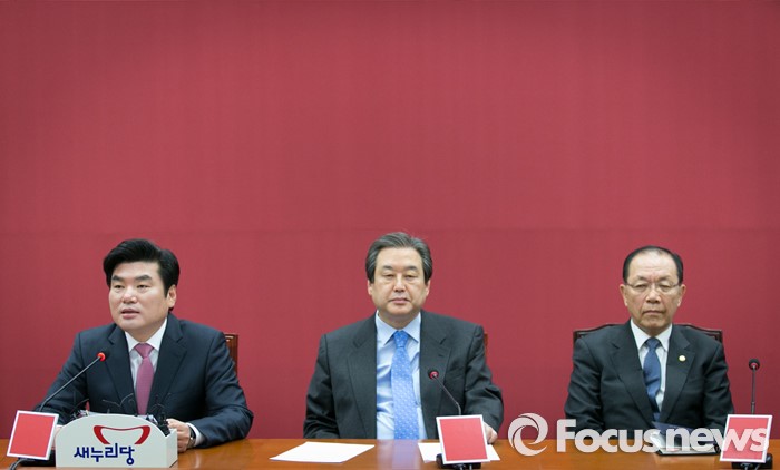 (서울=포커스뉴스) 원유철 새누리당 원내대표가 24일 오전 서울 여의도 국회에서 열린 최고중진연석회의에 참석해 모두발언을 하고 있다. 오른쪽부터 황우여 의원, 김무성 대표, 원 원내대표.