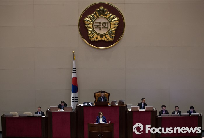 (서울=포커스뉴스) 더불어민주당 김광진 의원의 5시간32분을 깨고, 7시간째 필리버스터를 이어가고 있는 두 번째 필리버스터 주자 은수미 더불어민주당 의원이 24일 오전 서울 여의도 국회 본회의장에서 테러방지법과 관련해 무제한 토론을 하고 있다.