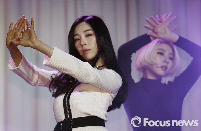 (서울=포커스뉴스) 24일 오전 서울 강남구 리버사이드 호텔에서 열린 걸그룹 레이디스 코드의 싱글앨범 '미스터리'(MYST3RY) 발표 쇼케이스에 참석한 멤버 애슐리가 신곡 '갤럭시'의 무대를 선보이고 있다.