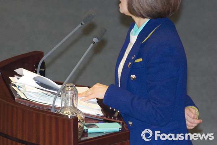 (서울=포커스뉴스) 테러방지법 직권상정에 반발해 야당의 무제한 토론(필리버스터)이 진행되고 있는 24일 오후 서울 여의도 국회 본회의장에서 토론에 참여한 은수미 더불어민주당 의원이 발언하고 있다. 은 의원은 이날 10시간 18분의 토론을 기록해 국내 최장기록인 10시간 15분을 경신했다.