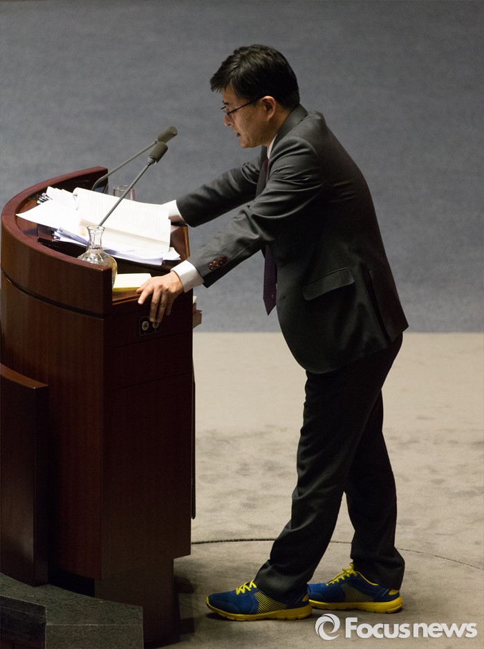 (서울=포커스뉴스) 테러방지법 직권상정에 반발해 야당의 무제한 토론(필리버스터)이 진행되고 있는 24일 오후 서울 여의도 국회 본회의장에서 박원석 정의당 의원이 발언하고 있다.