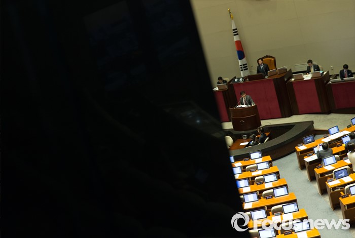 (서울=포커스뉴스) 테러방지법 직권상정에 반발해 야당의 무제한 토론(필리버스터)이 진행되고 있는 24일 오후 서울 여의도 국회 본회의장에서 박원석 정의당 의원이 발언하고 있다.