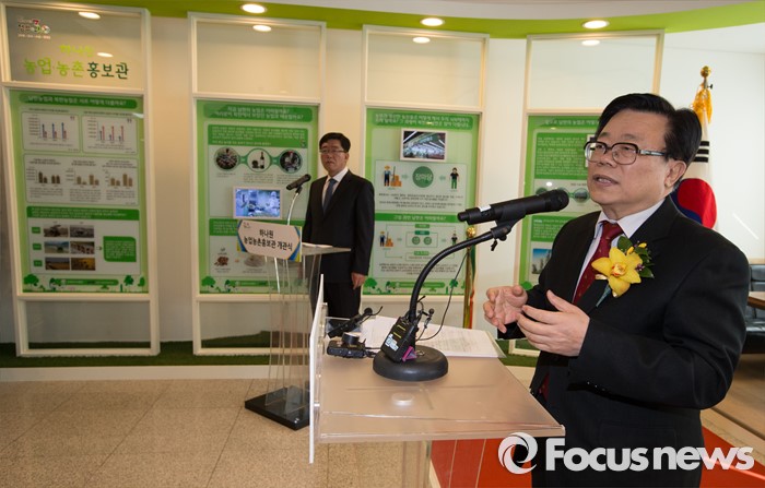 (안성=포커스뉴스) 24일 오후 경기 안성시 하나원에서 열린 하나원 농업·농촌 홍보관 개관식에서 이동필 농림축산식품부 장관이 축사하고 있다.