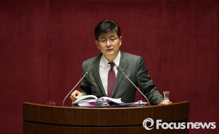 (서울=포커스뉴스) 박원석 정의당 의원이 24일 오후 서울 여의도 국회 본회의장에서 테러방지법의 본회의 의결을 막기 위한 필리버스터(무제한 토론을 통한 합법적 의사진행 방해)를 하고 있다.