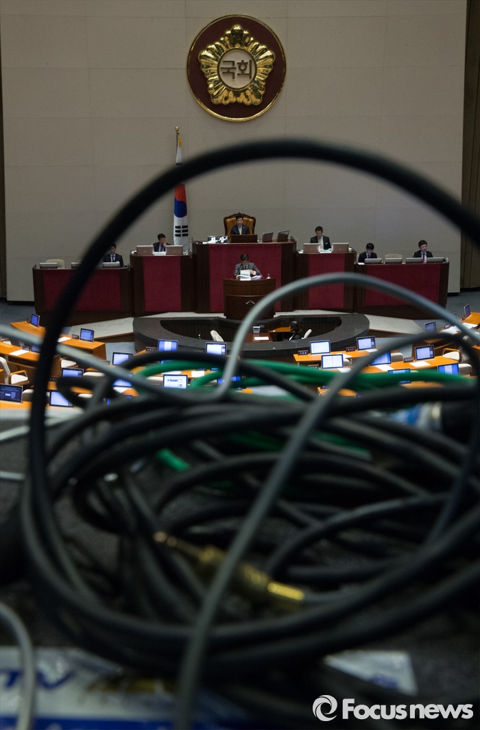 (서울=포커스뉴스) 테러방지법 직권상정에 반발해 야당의 무제한 토론(필리버스터)이 진행되고 있는 24일 오후 서울 여의도 국회 본회의장에서 박원석 정의당 의원이 발언하고 있다.