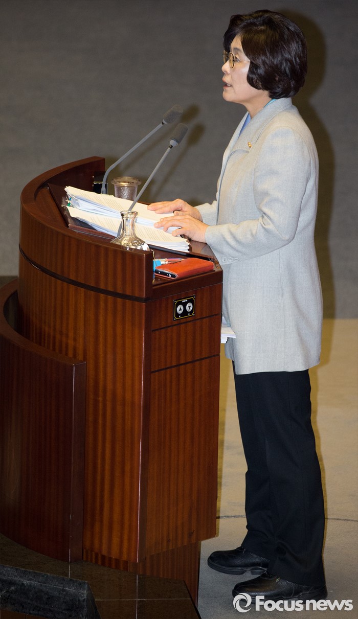 (서울=포커스뉴스) 테러방지법 직권상정에 반발해 야당의 무제한 토론(필리버스터)이 진행되고 있는 24일 오후 서울 여의도 국회 본회의장에서 유승희 더불어민주당 의원이 발언하고 있다.