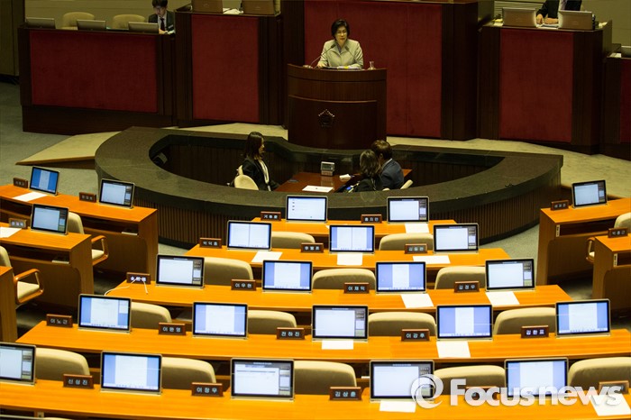(서울=포커스뉴스) 테러방지법 직권상정에 반발해 야당의 무제한 토론(필리버스터)이 진행되고 있는 24일 오후 서울 여의도 국회 본회의장에서 유승희 더불어민주당 의원이 발언하고 있다.