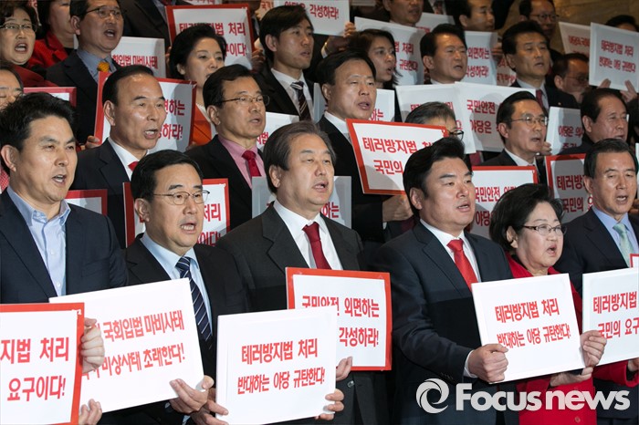 (서울=포커스뉴스) 야당이 지난 23일 본회의에 상정된 테러방지법 처리를 지연시키기 위해 필리버스터(무제한 토론)를 이어가고 있는 가운데, 새누리당은 테러방지법 통과의 당위성을 주장하고 나섰다.