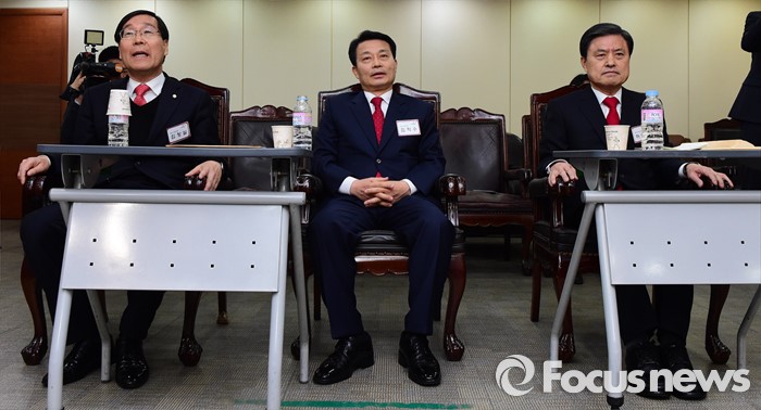 (서울=포커스뉴스) 25일 오전 서울 여의도 새누리당사에서 열린 20대 총선 공천 신청자 면접심사에 참석한 김장실(왼쪽부터), 김척수, 허남식 부산 사하갑 예비후보가 공관위원들의 질문에 답하고 있다.