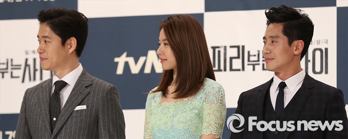 (서울=포커스뉴스) 25일 오후 서울 영등포구 타임스퀘어 아모리스홀에서 열린 tvN 월화드라마 '피리부는 사나이' 제작발표회에 참석한 배우 유준상(왼쪽부터), 조윤희, 신하균이 포토타임을 갖고 있다.