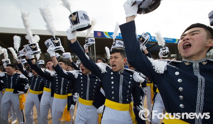 (청주=포커스뉴스) 25일 오후 충북 청주시 공군사관학교 연병장에서 열린 제64기 공군사관학교 졸업식에서 졸업생도들이 구호를 외치고 있다.