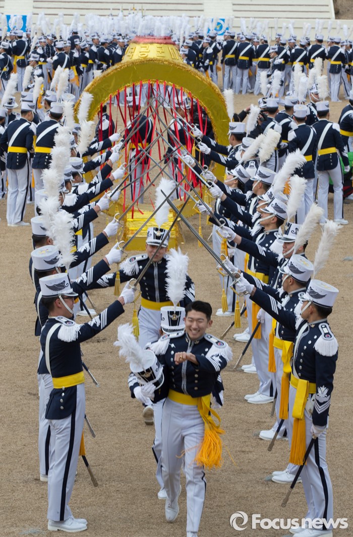 (청주=포커스뉴스) 25일 오후 충북 청주시 공군사관학교 연병장에서 열린 제64기 공군사관학교 졸업식에서 졸업생도들이 졸업의식을 하고 있다.