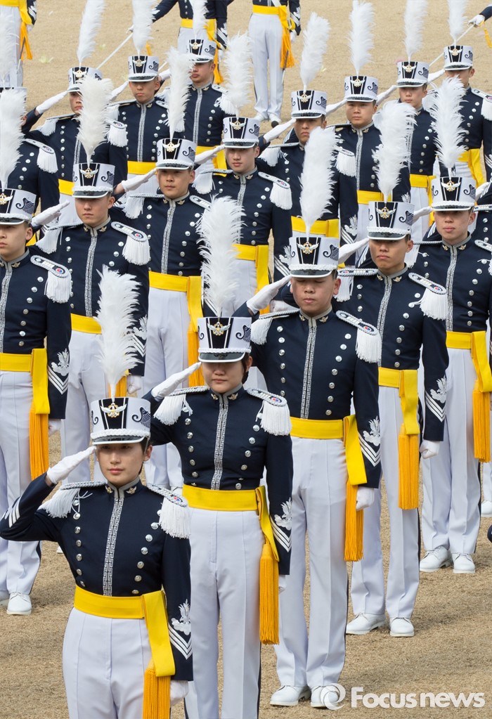 (청주=포커스뉴스) 25일 오후 충북 청주시 공군사관학교 연병장에서 열린 제64기 공군사관학교 졸업식에서 졸업생도들이 거수경례를 하고 있다.
