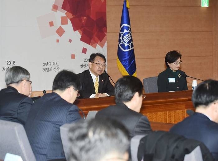 (서울=포커스뉴스) 유일호 부총리 겸 기획재정부 장관이 25일 서울 종로구 정부서울청사 별관에서 열린 공공기관 기관장 워크숍에 참석해 모두발언을 하고 있다. <사진제공=기획재정부>