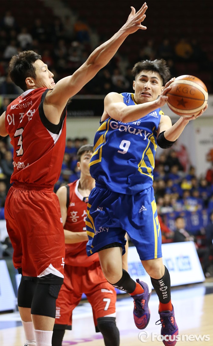 (안양=포커스뉴스) 25일 안양실내체육관에서 열린 2015-2016 프로농구 6강 플레이오프 KGC-삼성 1차전에서 삼성 주희정이 KGC 이정현의 마크를 뚫으며 레이업슛을 시도하고 있다.
