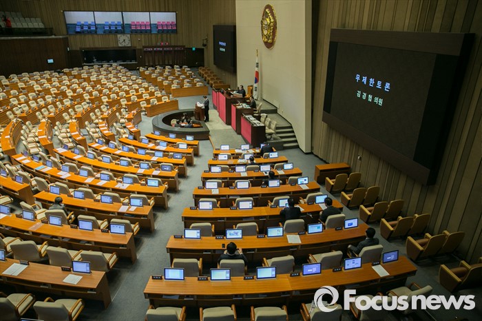 (서울=포커스뉴스) 테러방지법 직권상정에 반발해 야당의 무제한 토론(필리버스터)이 나흘째 진행되고 있는 26일 오전 서울 여의도 국회 본회의장에서 토론에 참여한 김경협 더불어민주당 의원이 발언하고 있다.