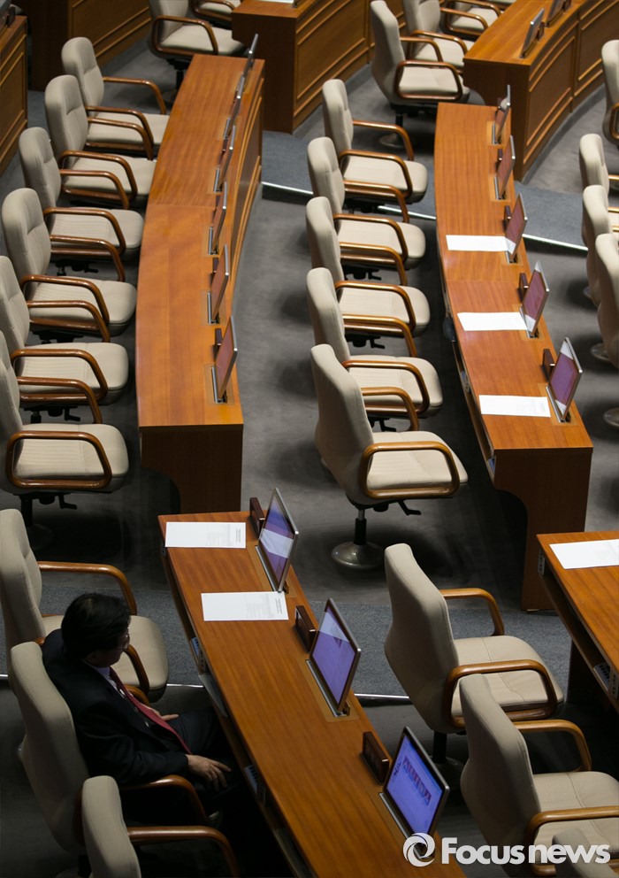 (서울=포커스뉴스) 테러방지법 직권상정에 반발해 야당의 무제한 토론(필리버스터)이 나흘째 진행되고 있는 26일 오전 서울 여의도 국회 본회의장에서 일부 의원들이 졸고 있다.