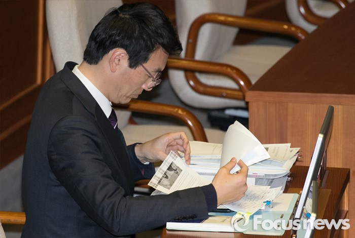 (서울=포커스뉴스) 테러방지법 직권상정에 반발해 야당의 무제한 토론(필리버스터)이 나흘째 진행되고 있는 26일 오전 서울 여의도 국회 본회의장에서 서기호 정의당 의원이 다음 토론 참여를 위해 준비하고 있다.