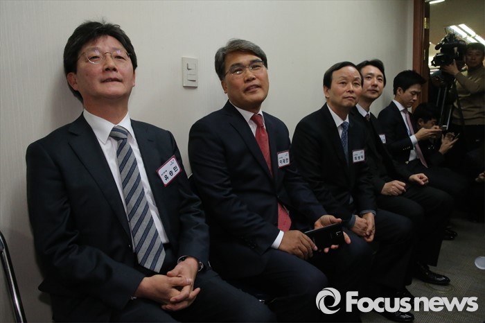 (서울=포커스뉴스) 26일 오전 서울 여의도 새누리당사에서 열린 20대 총선 공천 신청자 면접심사에 참석한 유승민(왼쪽부터), 이재만, 최성덕, 허진영 대구 동구을 예비후보가 면접을 기다리고 있다.