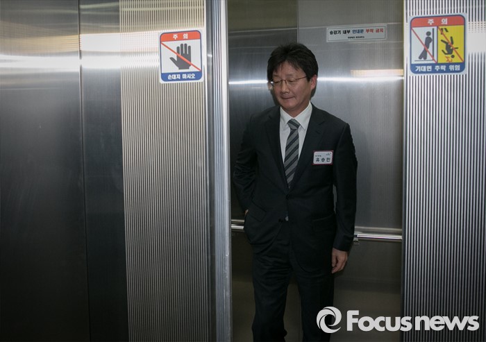 (서울=포커스뉴스) 26일 오전 서울 여의도 새누리당사에서 열린 20대 총선 공천 신청자 면접심사에 대구 동구을에 신청한 유승민 의원이 면접을 마친 뒤 승강기에 올라 이동하고 있다.