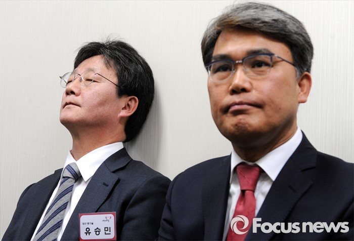 (서울=포커스뉴스) 26일 오전 서울 여의도 새누리당사에서 열린 20대 총선 공천 신청자 면접심사에 참석한 유승민(왼쪽), 이재만 대구 동구을 예비후보가 면접을 기다리고 있다.