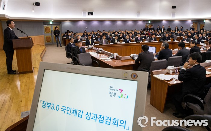 (서울=포커스뉴스) 26일 오후 서울 중구 정부서울청사 별관에서 열린 '2016년 제1회 정부3.0 국민체감 성과점검회의'에 참석한 현기환 정무수석이 격려사를 하고 있다.