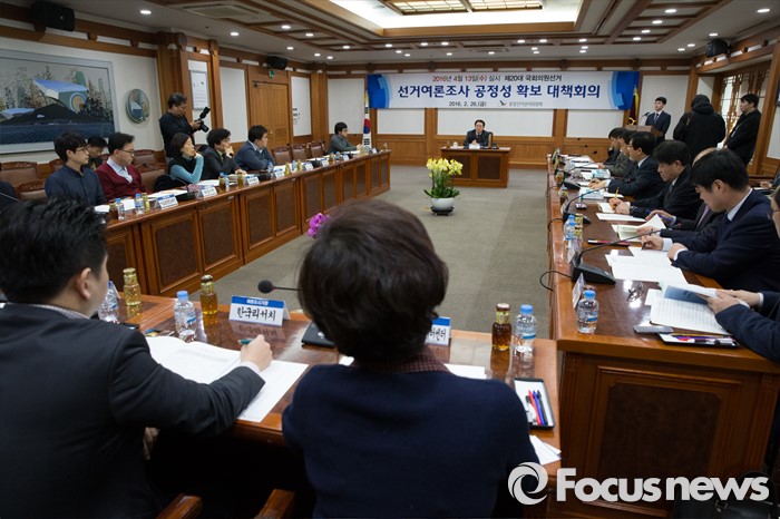 (과천=포커스뉴스) 김신기 선거정책실장이 26일 오후 경기도 과천시 중앙선거관리위원회에서 열린 선거여론조사 공정성 확보 대책회의에서 정당관계자, 주요 여론조사업체 대표자들에게 모두발언을 하고 있다.