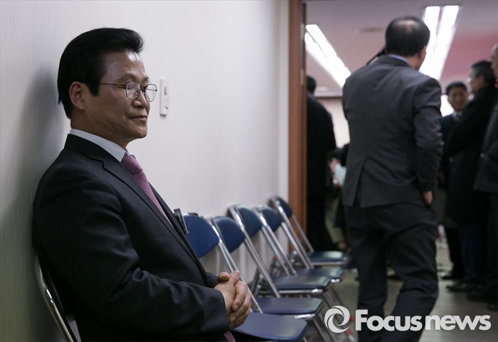 (서울=포커스뉴스) 26일 오후 서울 여의도 새누리당사에서 열린 20대 총선 공천 신청자 면접심사에서 대구 달서을에 신청한 김용판(왼쪽) 전 서울지방경찰청장과 윤재옥 의원이 면접을 기다리고 있다.