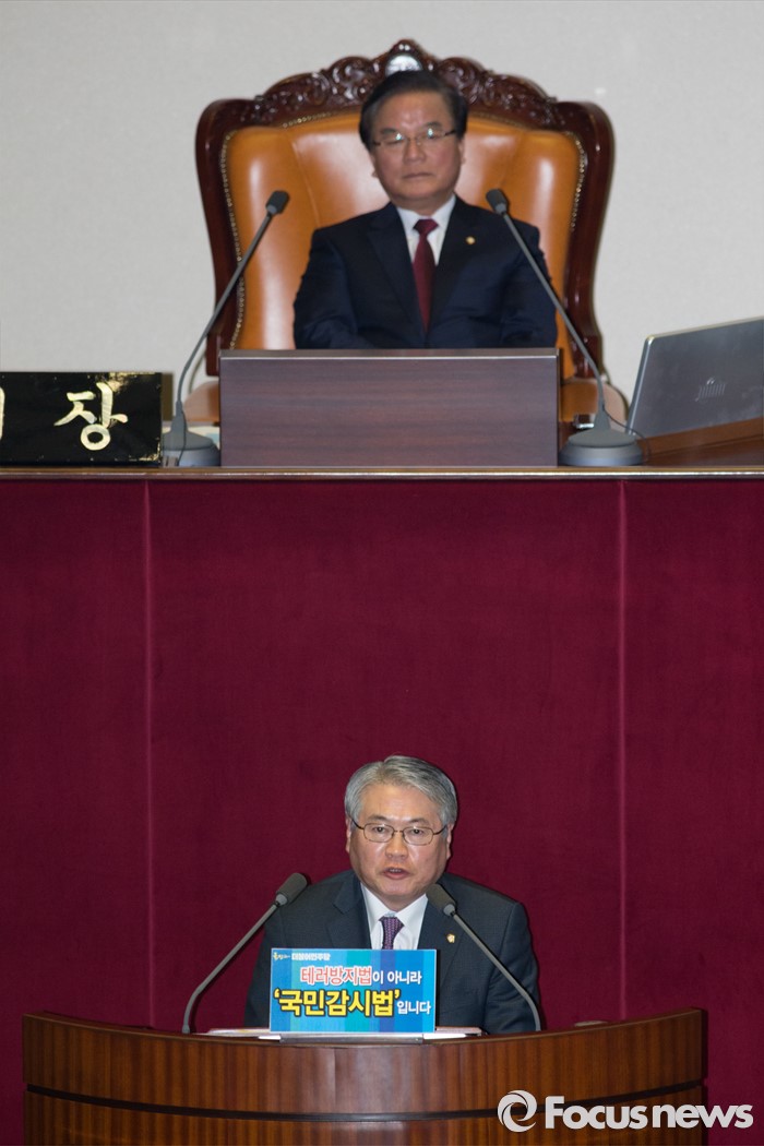 (서울=포커스뉴스) 테러방지법 직권상정에 반발해 야당이 무제한 토론(필리버스터)를 나흘째 진행하고 있는 26일 오후 서울 여의도 국회 본회의장에서 토론에 참여한 김용익 더불어민주당 의원이 발언하고 있다.