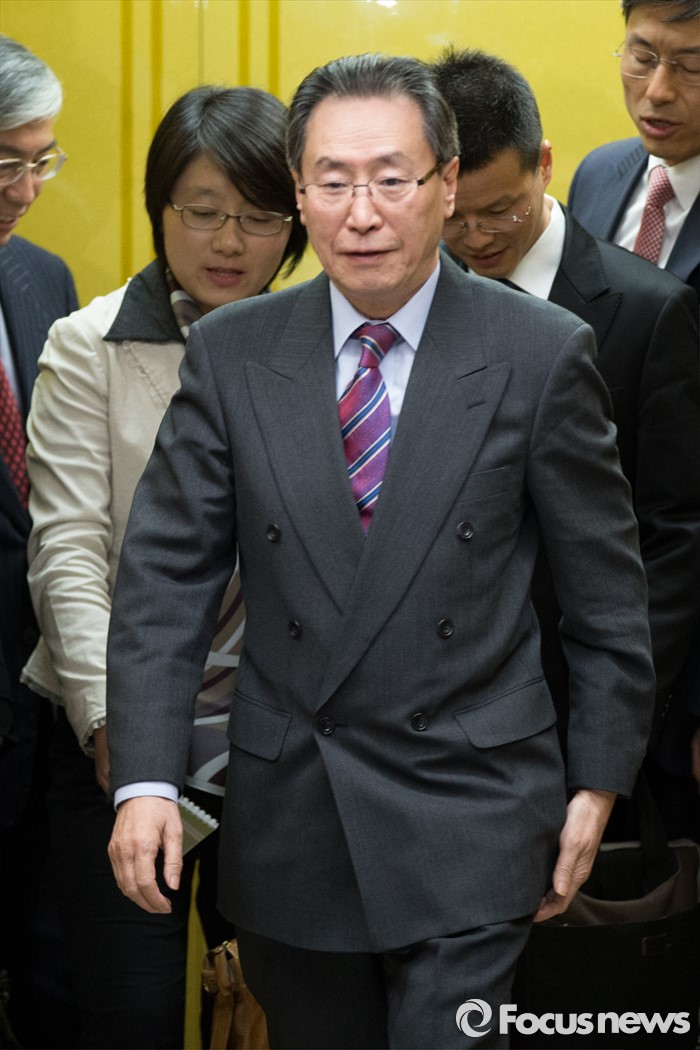 (서울=포커스뉴스) 중국 측 수석대표인 우다웨이 중국 외교부 한반도사무특별대표가 28일 오후 서울 종로구 외교부 청사에서 북핵 6자회담의 우리 측 수석대표인 황준국 외교부 한반도평화교섭본부장과의 면담을 끝내고 엘레베이터에서 내리고 있다.