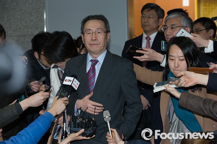(서울=포커스뉴스) 중국 측 수석대표인 우다웨이 중국 외교부 한반도사무특별대표가 28일 오후 서울 종로구 외교부 청사에서 북핵 6자회담의 우리 측 수석대표인 황준국 외교부 한반도평화교섭본부장과의 면담을 끝내고, 취재진의 질문에 대답하고 있다.
