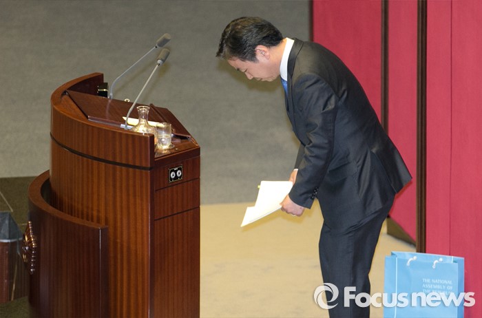 (서울=포커스뉴스) 테러방지법 직권상정에 반발해 야당이 무제한 토론(필리버스터)를 일주일째 진행하며 총 130시간을 돌파한 29일 오전 서울 여의도 국회 본회의장에서 토론을 마친 홍종학 더불어민주당 의원이 인사하고 있다.