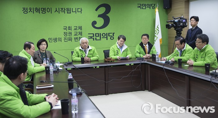 (서울=포커스뉴스) 국민의당 안철수 상임공동대표와 김한길 상임공동선대위원장을 비롯한 집행부가 서울 마포구 국민의당 당사에서 최고위원회 회의를 하고 있다.