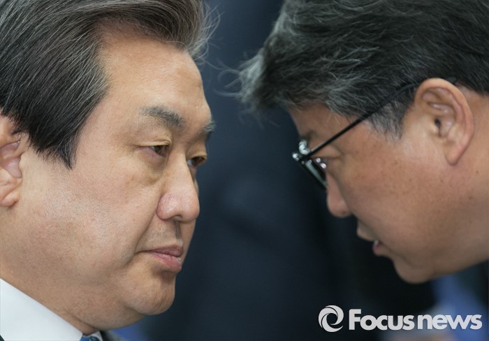 | △ 머리 맞댄 김무성-조원진 |