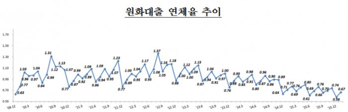 원화대출 연체율 전월말 대비 0.09%p상승