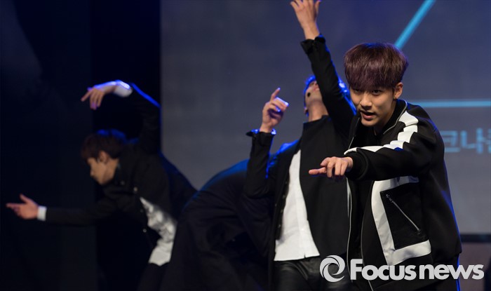 (서울=포커스뉴스) 29일 오후 서울 강남구 일지아트홀에서 신인 보이그룹 크나큰이 데뷔 쇼케이스에서 타이틀곡 'KNOCK'를 선보이고 있다.