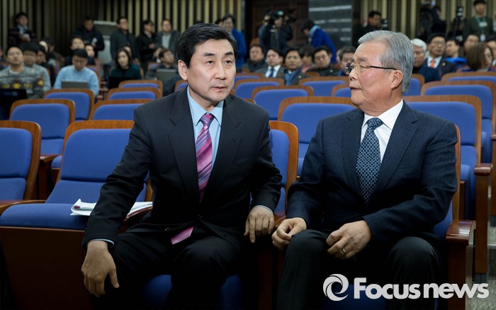 (서울=포커스뉴스) 더불어민주당이 필러버스터 중단을 예고한 1일 오후 이종걸 더민주 원내대표와 김종인 비대위 대표가 서울 여의도 국회에서 열린 의원총회에 참석해 총회 시작을 기다리며 대화를 나누고 있다.
