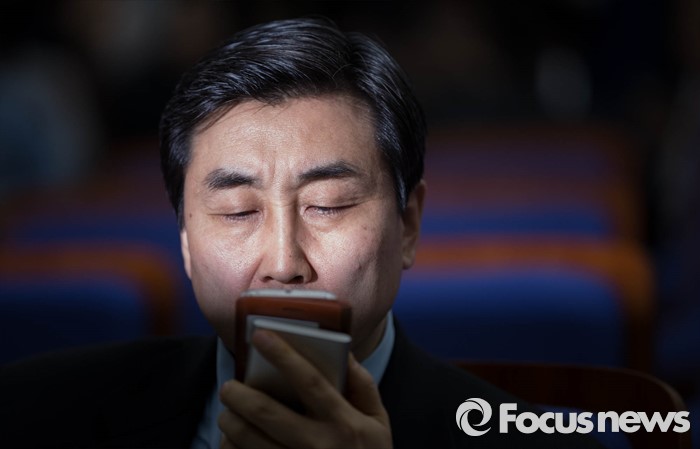 (서울=포커스뉴스) 더불어 민주당이 필러버스터 중단을 예고한 1일 오후 서울 여의도 국회에서 열린 의원총회에 참석한 이종걸 더민주 원내대표가 휴대폰을 바라보고 있다.